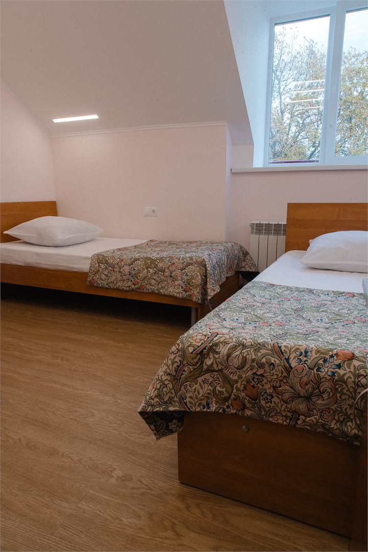 Площадь номера - 24 кв.м. 2 осн. места. 1 доп. место. Мебель: зеркало, кровати односпальные, тумба, шкаф. Оборудование: мини-холодильник, набор посуды, телевизор ЖК. Санузел: с душем, туалетные принадлежности, фен. Сервис: смена полотенец, смена постельного белья, уборка номера.