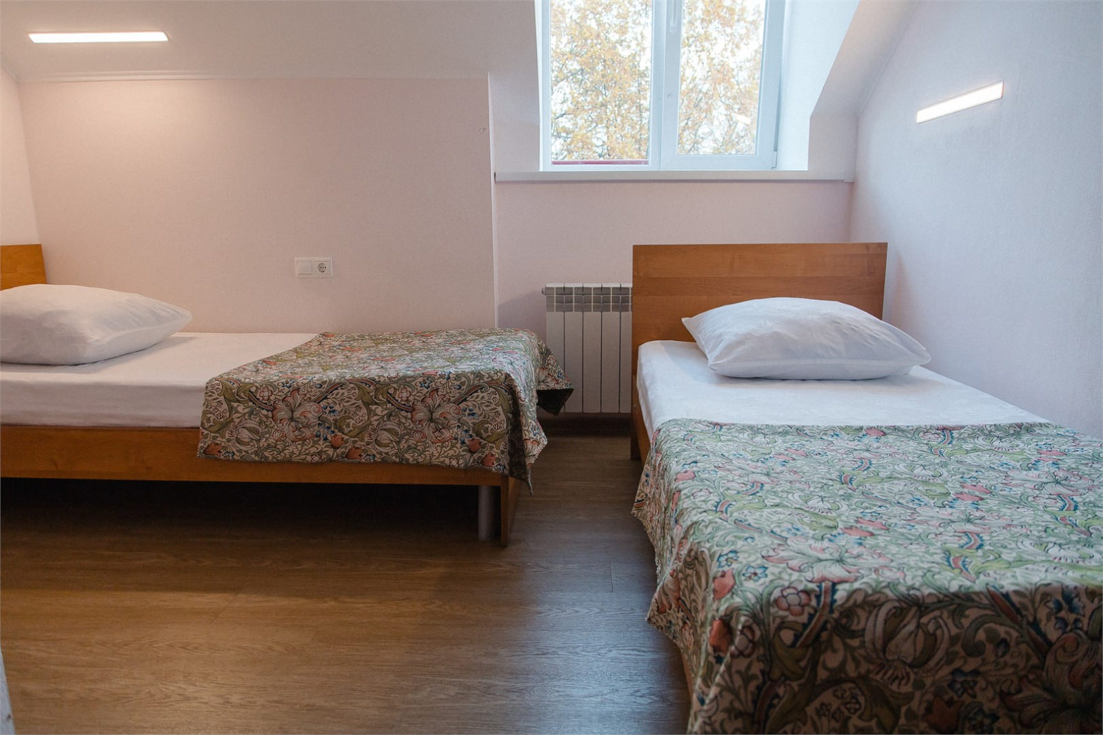 Площадь номера - 15 кв.м. 2 осн. места. 1 доп. место. Мебель: зеркало, кровати односпальные, тумба, шкаф. Оборудование: мини-холодильник, набор посуды, телевизор ЖК. Санузел: с душем, туалетные принадлежности, фен. Сервис: смена полотенец, смена постельного белья, уборка номера.